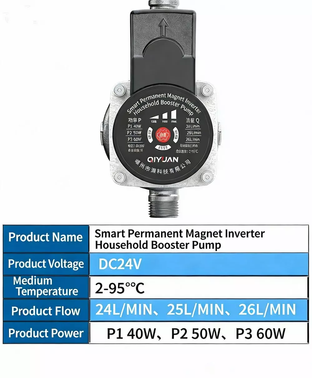 Pam Penggalak Senyap Kekerapan Magnet Kekal Berubah Frekuensi dilengkapi dengan sistem kawalan frekuensi pembolehubah magnet kekal termaju, yang secara automatik melaraskan kelajuan motor mengikut permintaan air sebenar. Digabungkan dengan 3 mod tekanan boleh laras (rendah/sederhana/tinggi), ia memastikan bekalan air yang stabil dan selesa, sambil menjimatkan lebih daripada 30% tenaga berbanding pam penggalak tradisional, dengan berkesan mengurangkan penggunaan tenaga harian.