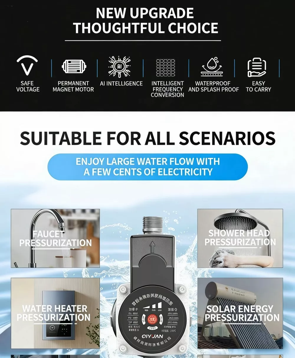 Menyasarkan pelbagai titik kesakitan isi rumah dengan tekanan air yang tidak mencukupi, Pam Penggalak Senyap Frekuensi Pembolehubah Magnet Kekal Pintar merangkumi sepenuhnya senario penggunaan teras berikut: