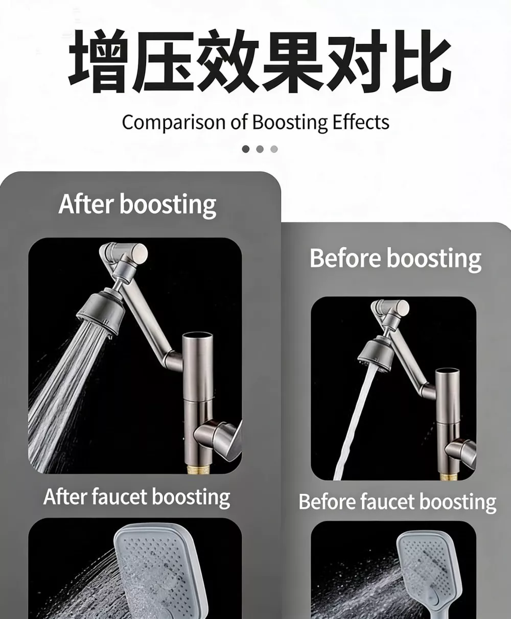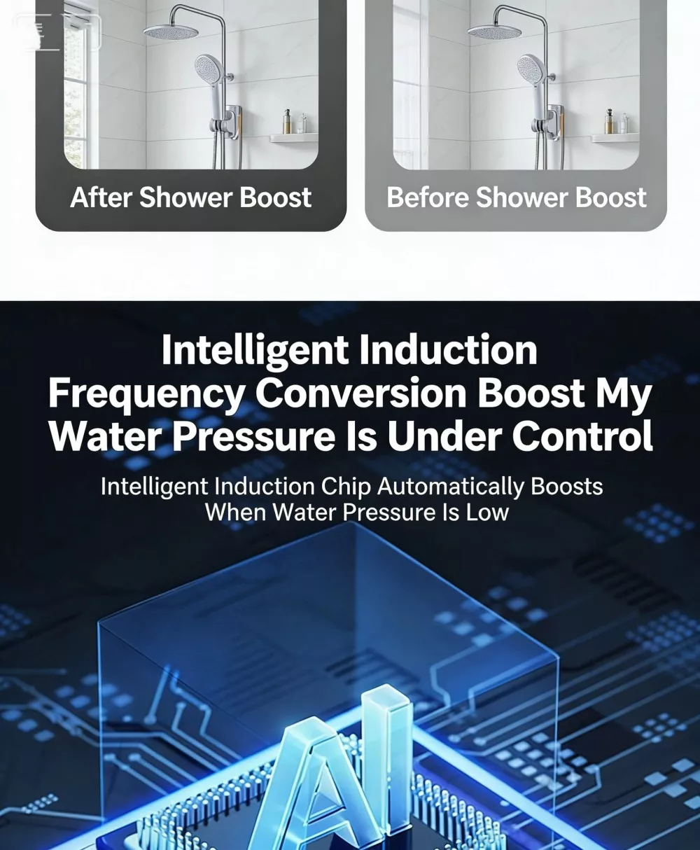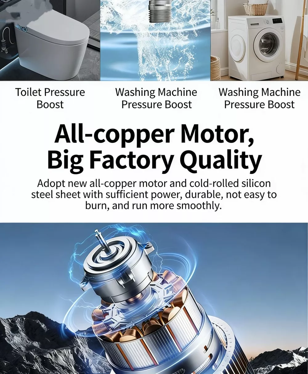 Peningkatan Tekanan Kepala Pancuran: Meningkatkan daya keluaran air pancuran, menyelesaikan masalah aliran air yang lemah dan suhu air yang turun naik, dengan sangat mengoptimumkan pengalaman mandi.