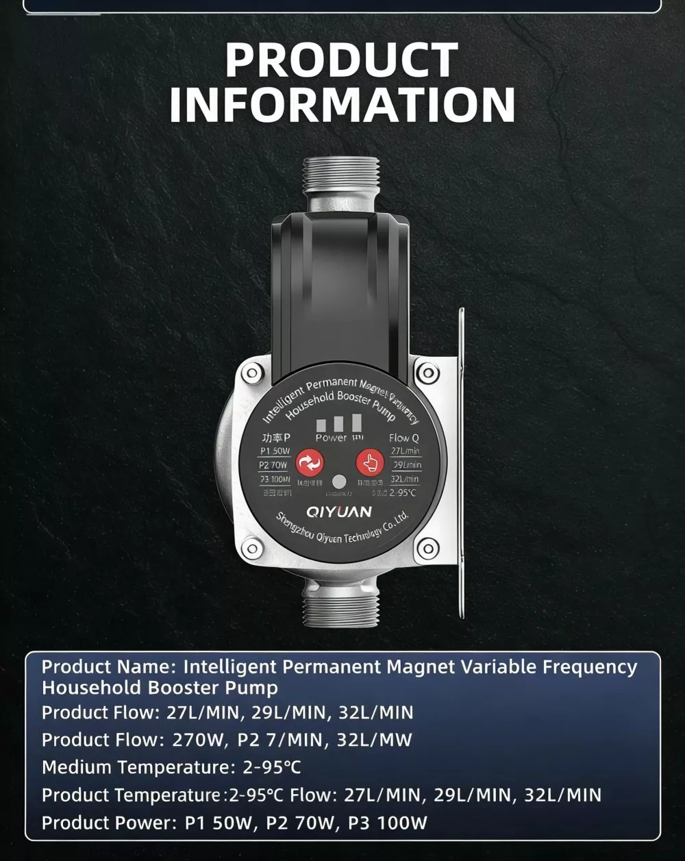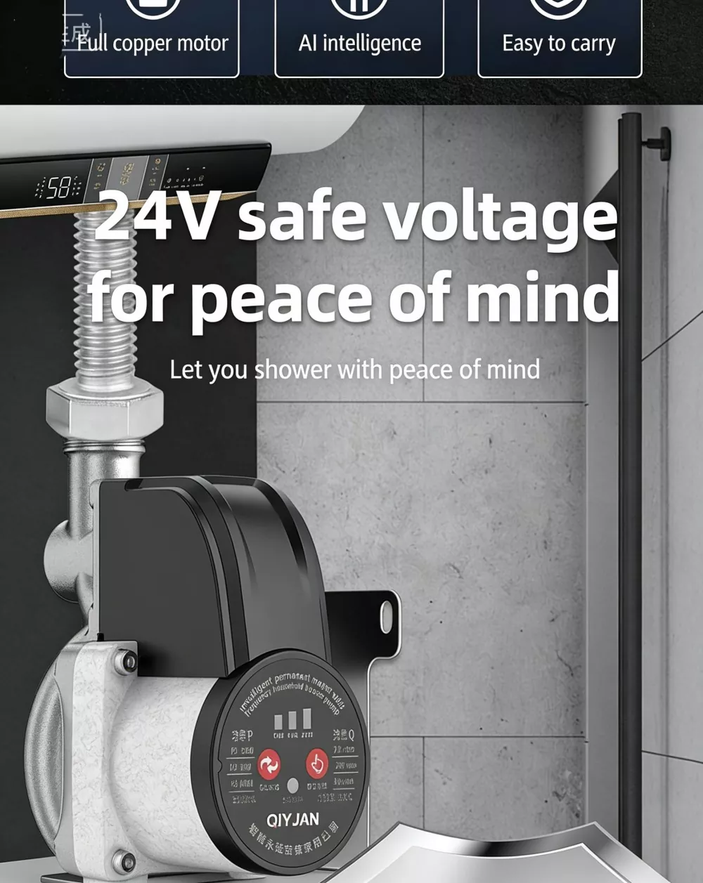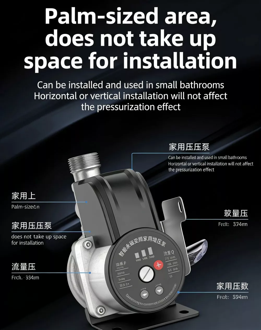 Reka bentuk yang padat dan ringan, dilengkapi dengan antara muka standard 3/4-inci untuk sambungan terus ke saluran paip air isi rumah. Pendakap pelekap dan aksesori pemasangan disertakan untuk pemasangan sendiri tanpa memerlukan juruteknik profesional.