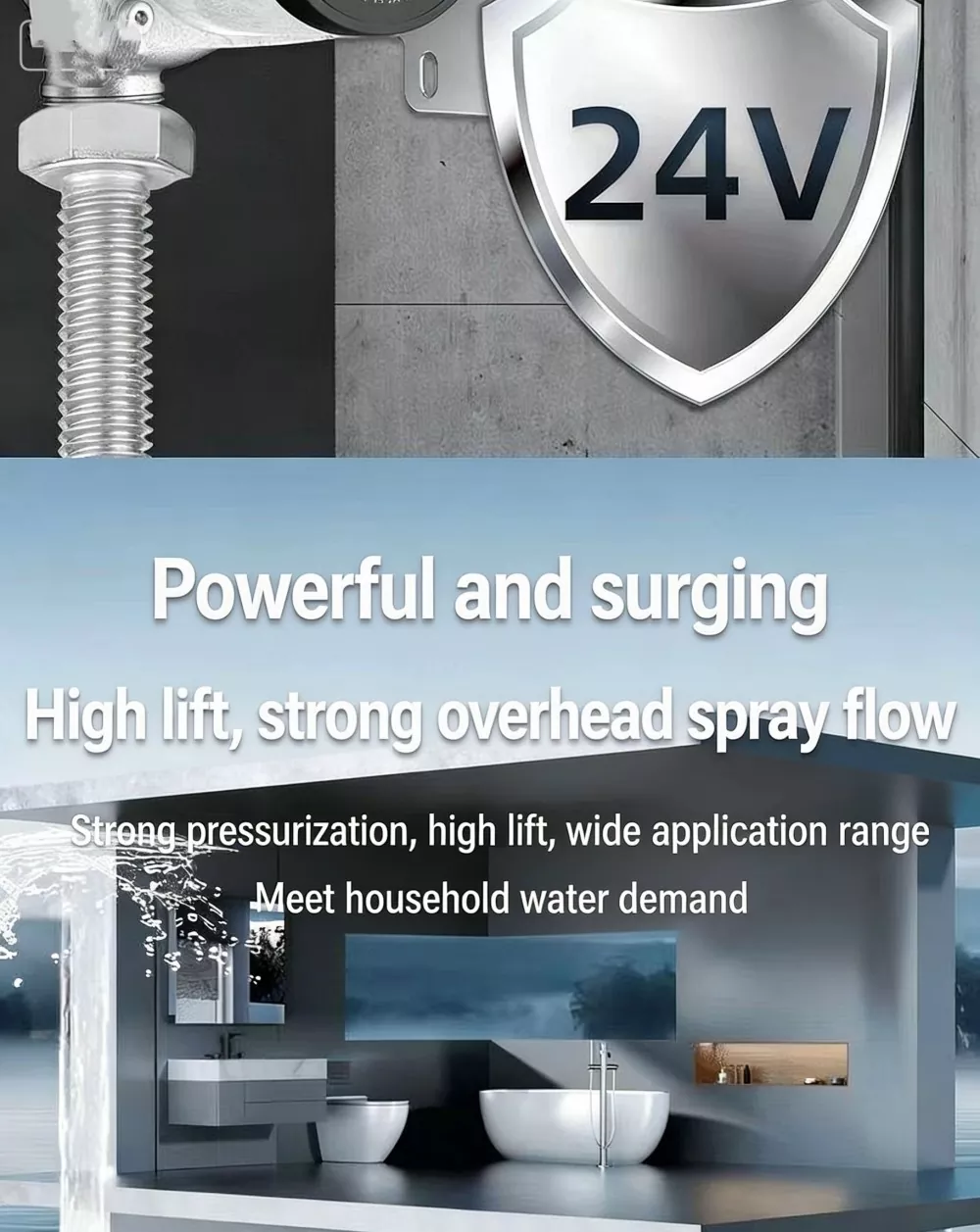 Selamat & boleh dipercayai: voltan selamat rendah 24V dengan penarafan kalis air IPX4, lebih selamat untuk kegunaan isi rumah.
